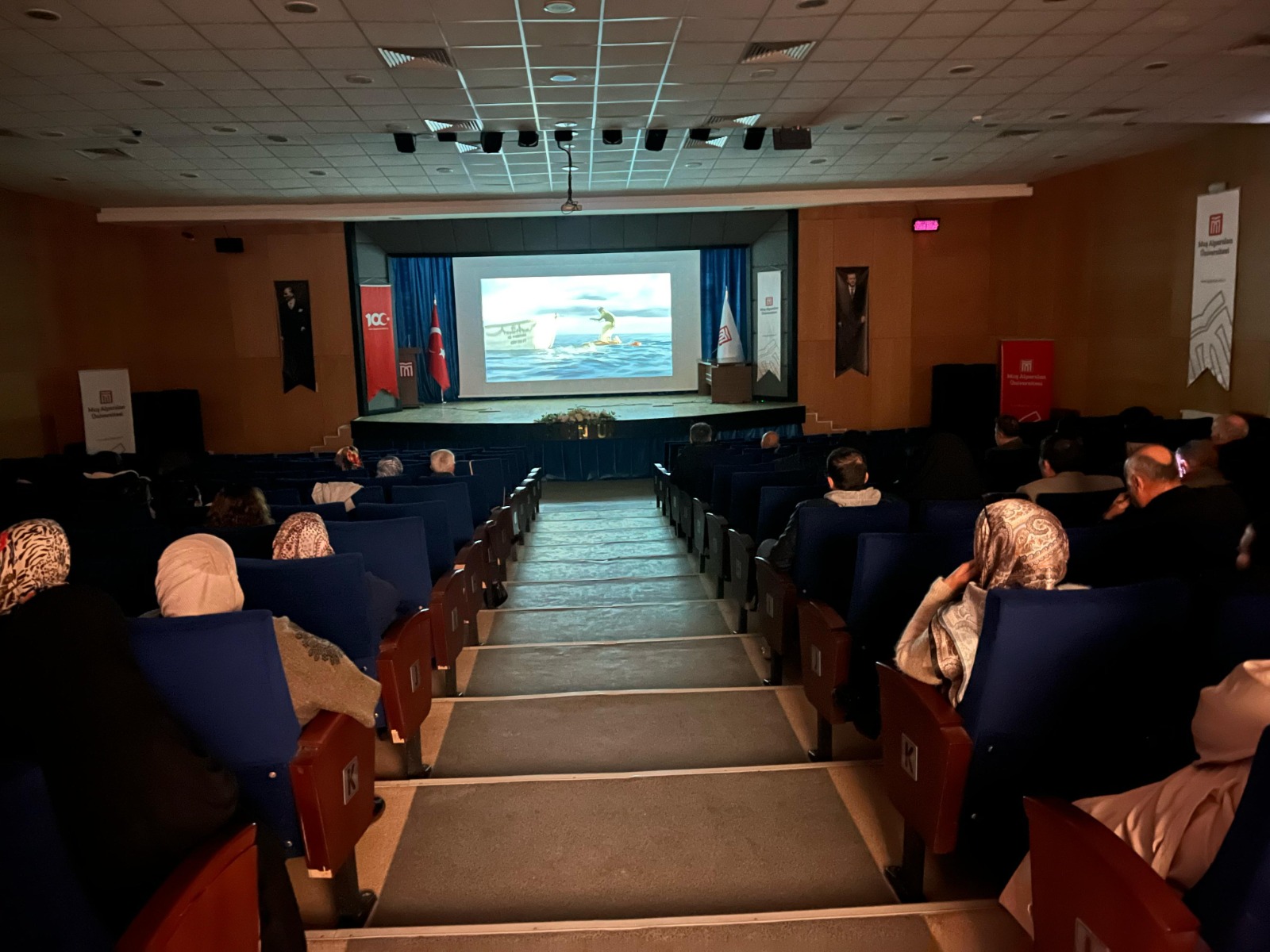Etkinlikte sinema gösterimi ve Ramazan’a özel iftar yemeği bir arada sunuldu. Muş Alparslan Üniversitesi 60+ Tazelenme Üniversitesi ve İletişim Fakültesi iş birliğiyle Prof. Dr. Sabahattin Zaim Konferans Salonu’nda düzenlenen sinema etkinliğinde, yönetmenliğini Ang Lee’nin üstlendiği ve görsel zenginliğiyle dikkat çeken Pi’nin Yaşamı adlı film gösterimi yapıldı. Etkinlikte 60+ Tazelenme Üniversitesi öğrencileri, sinemanın büyüleyici atmosferini deneyimleme ve birlikte keyifli zaman geçirme fırsatı buldu. Aktif yaşlanmayı teşvik eden sosyal katılım odaklı yapısıyla dikkat çeken etkinlik, üniversitemizin sunduğu iftar programıyla devam etti.