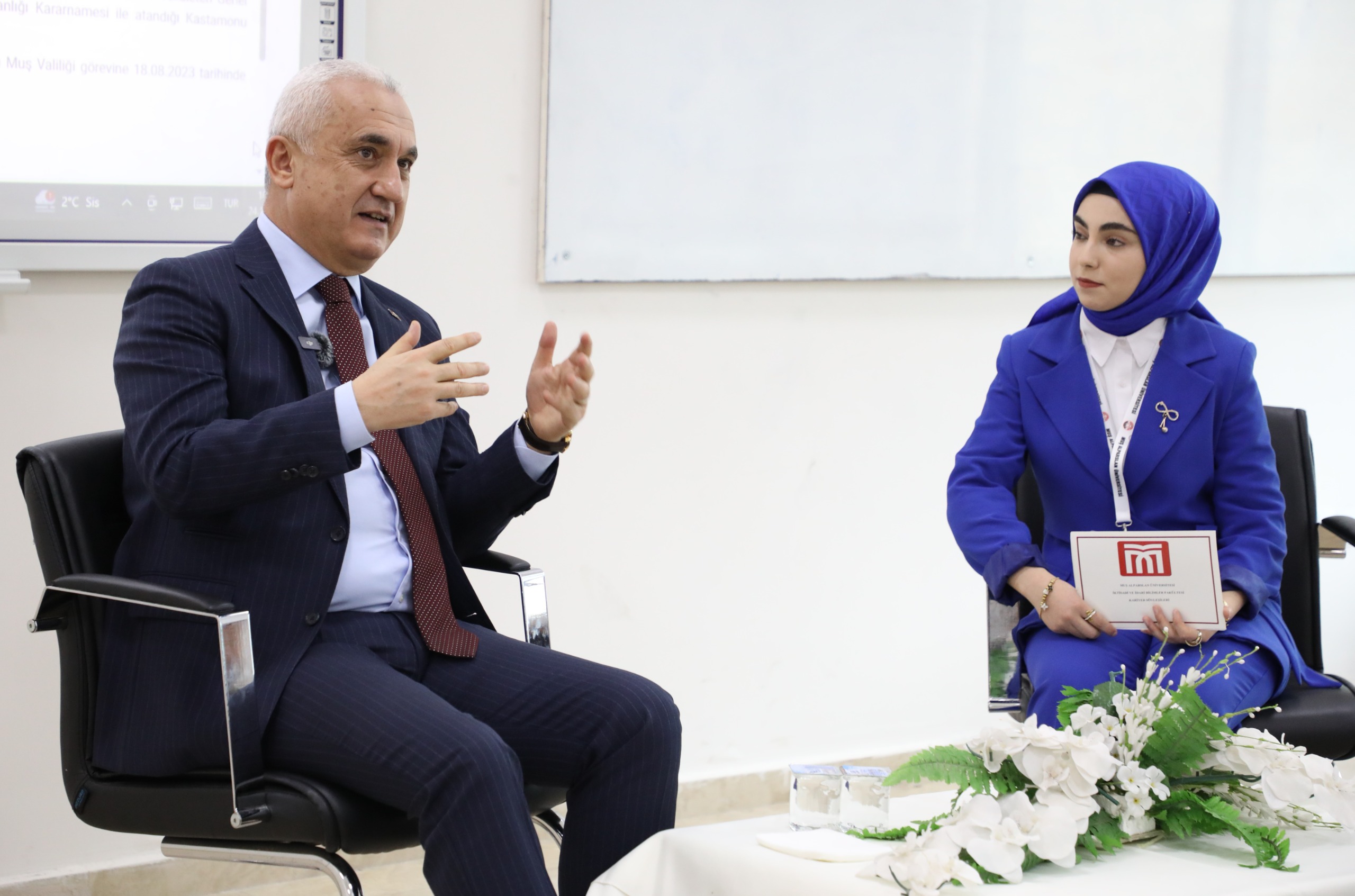 Muş Alparslan Üniversitesi Kamu Denetçiliği Topluluğu koordinatörlüğünde ve Şüheda Nur Avcı’nın moderatörlüğünde, "Kamu Yönetimi ve Liderlik" konulu bir söyleşi gerçekleştirildi.
