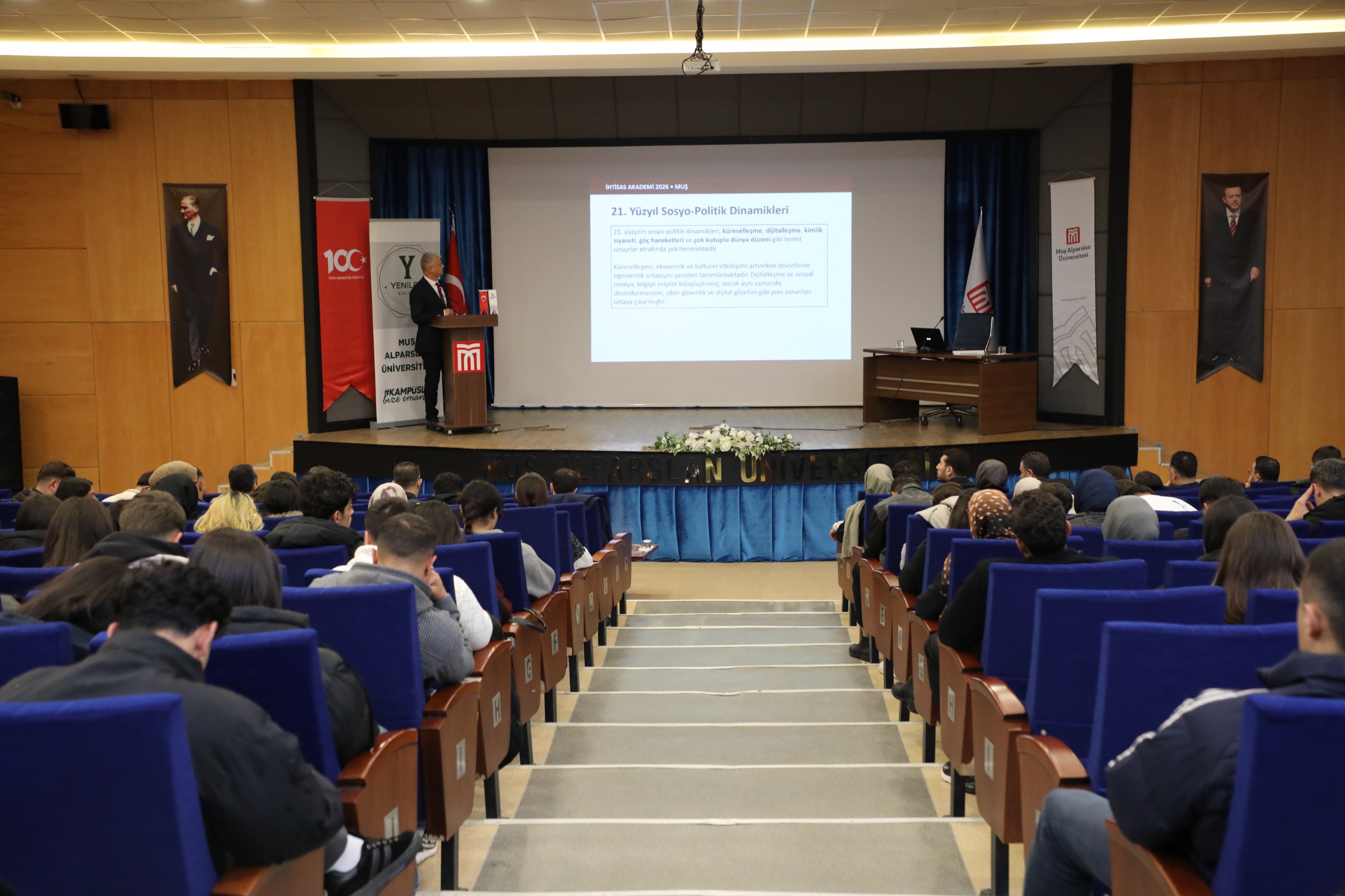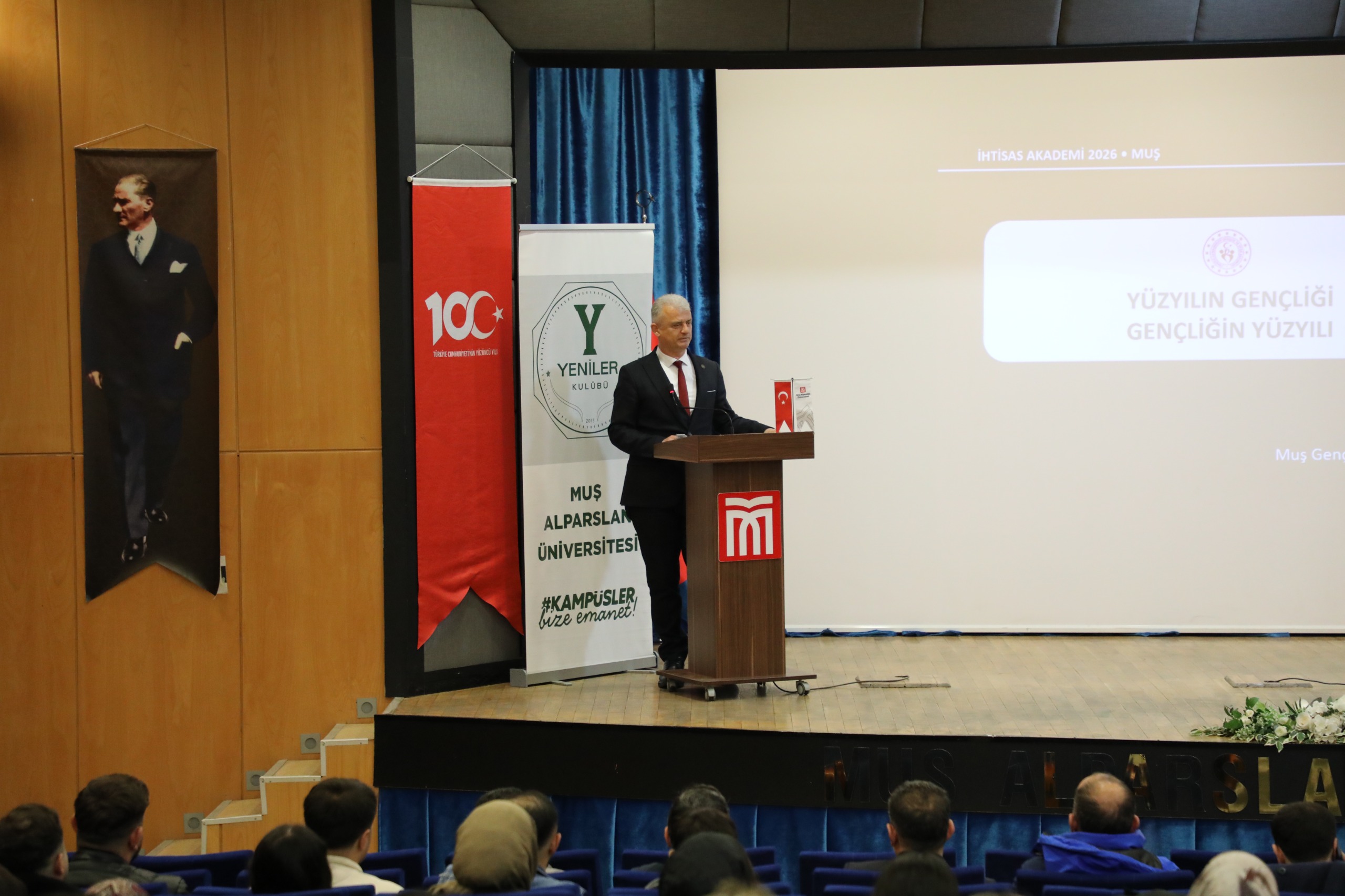 Üniversitemiz ev sahipliğinde, TÜGVA, Yeniler Kulübü ve İhtisas Akademi iş birliğiyle düzenlenen “Yüzyılın Gençliği, Gençliğin Yüzyılı” başlıklı program, Prof. Dr. Sabahattin Zaim Konferans Salonunda gerçekleştirildi.