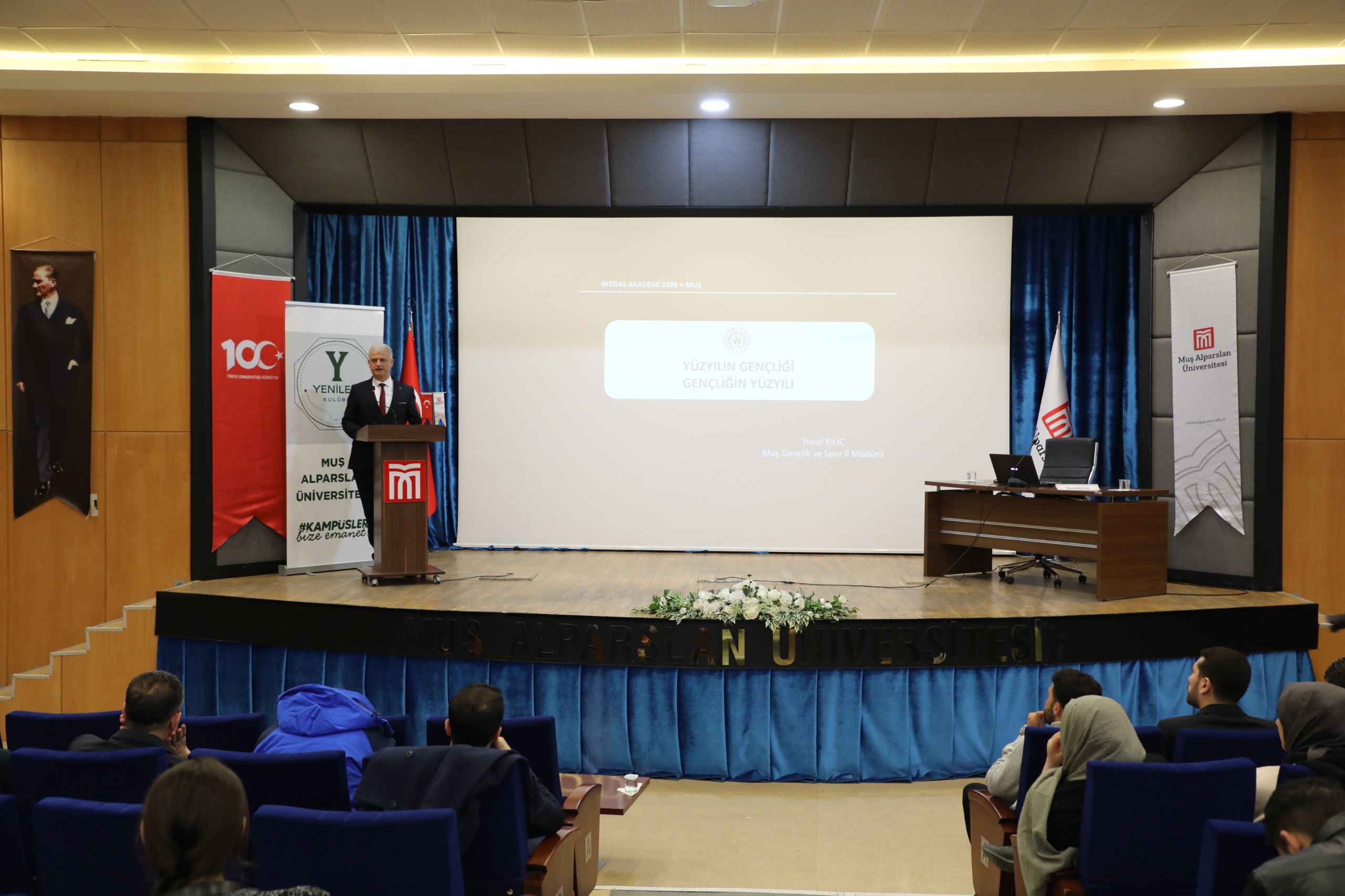 Programın misafir konuşmacısı olan Muş Gençlik ve Spor İl Müdürü Yusuf Kılıç, gençliğin toplumsal rolü, değerler dünyası ve geleceğe yönelik vizyonu üzerine değerlendirmelerde bulundu.