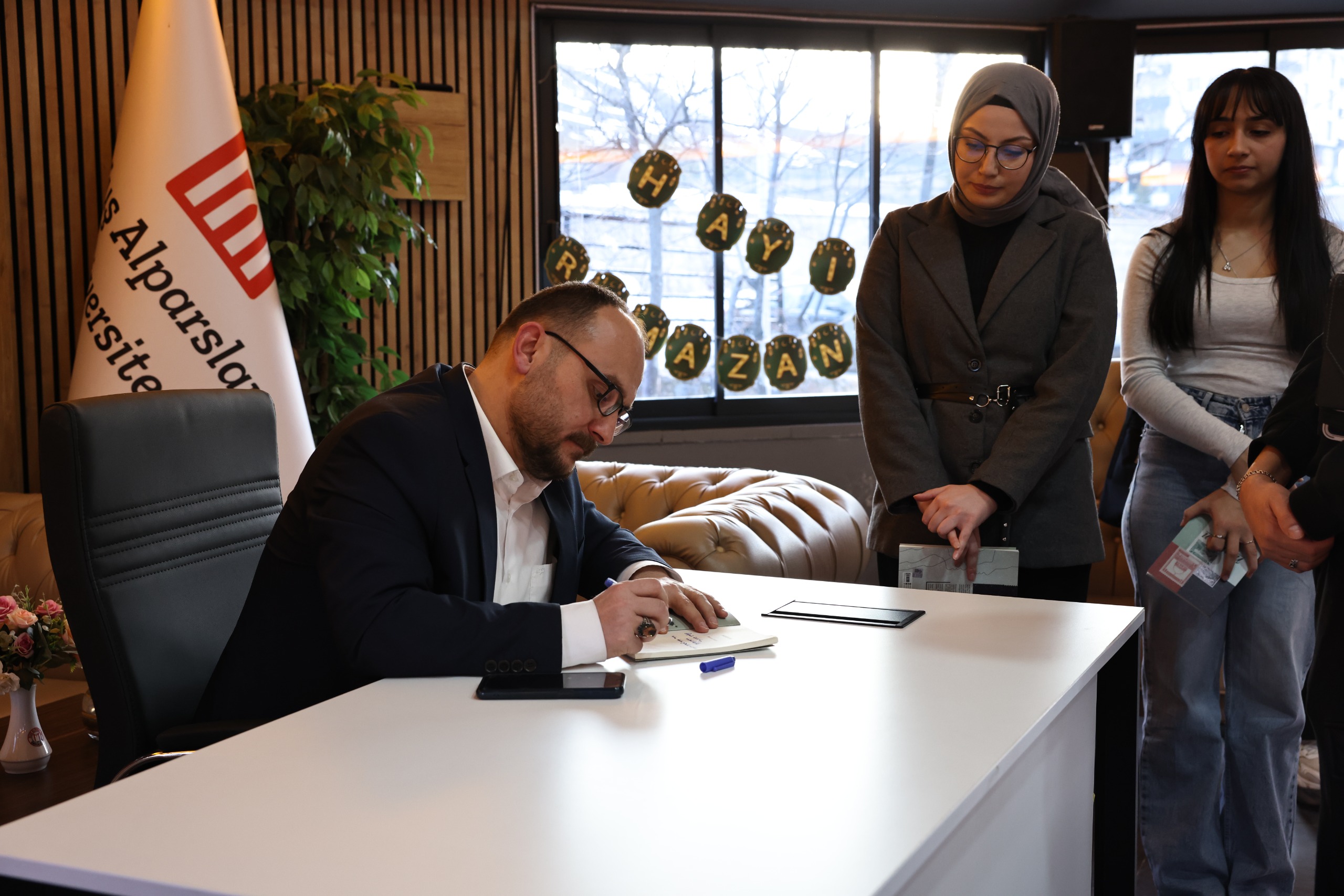 Programın ardından Rektörümüz Prof. Dr. Mustafa Alican, kaleme aldığı “Meryem” adlı kitabını katılımcılar için imzaladı.